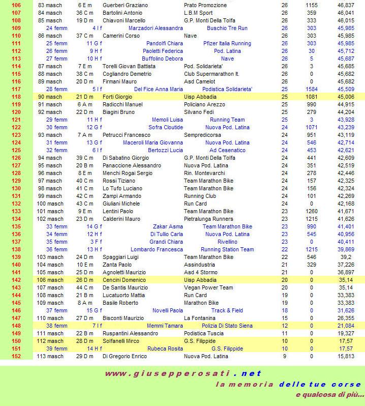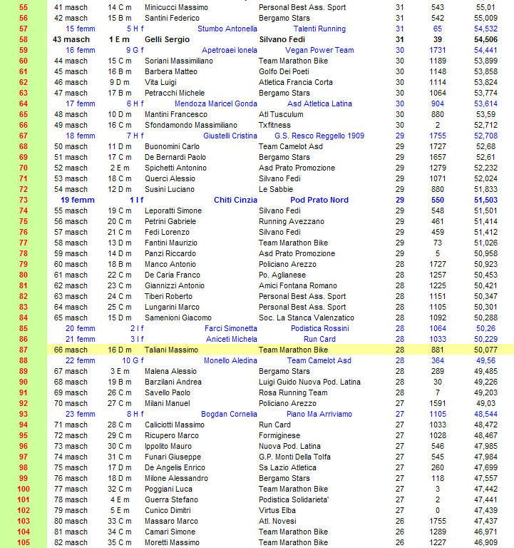 In grassetto i primi di categoria